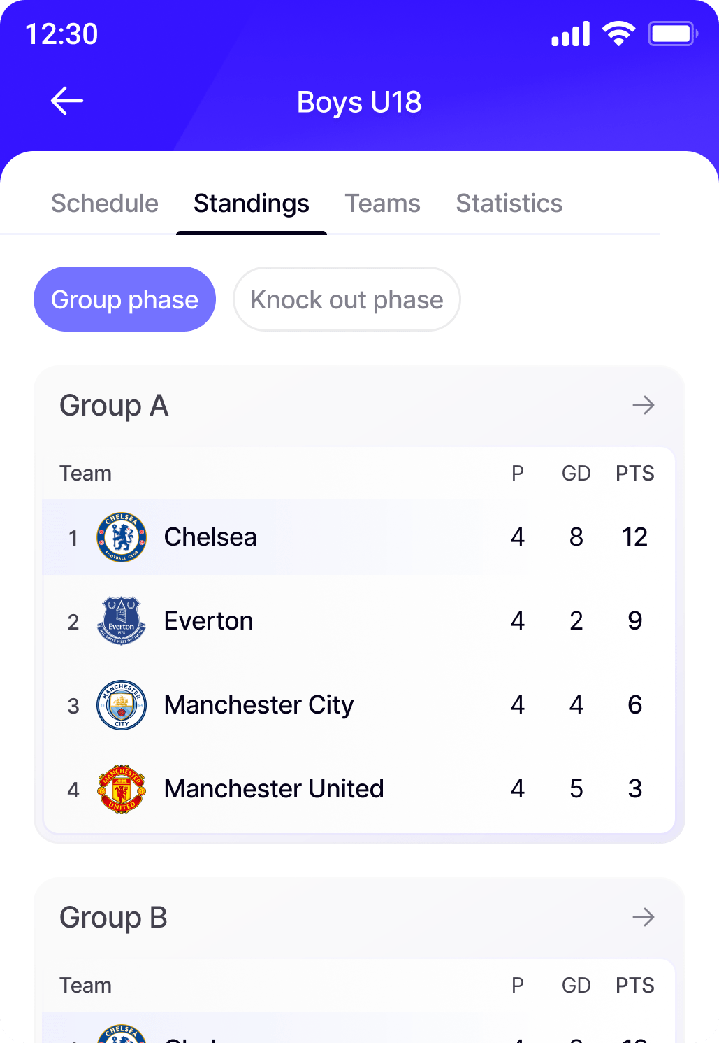 Schiedsrichter können ihre Zuweisungen einsehen und Ergebnisse von jedem Gerät eingeben.