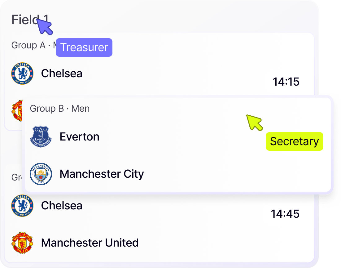 Verwalte Offizielle mit Leichtigkeit, von Massenimporten bis hin zu individuellen Zuweisungen und teambasierter Spielleitung.